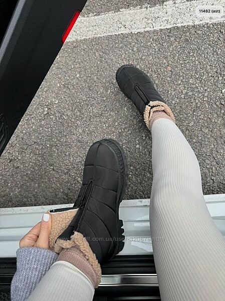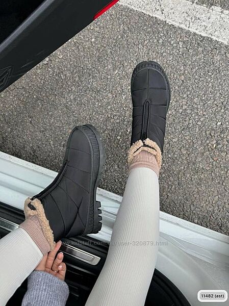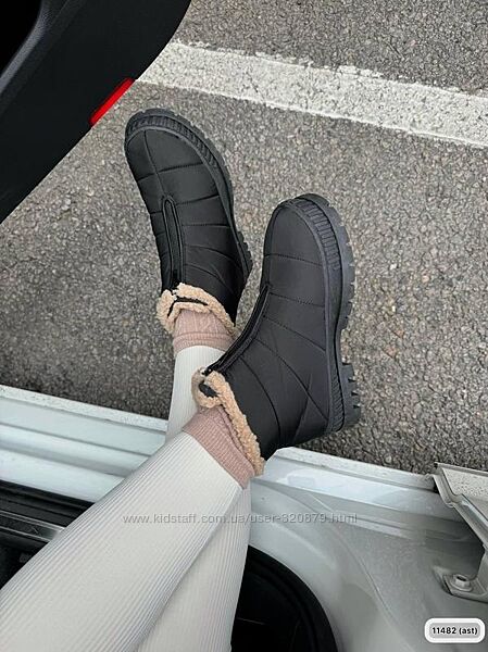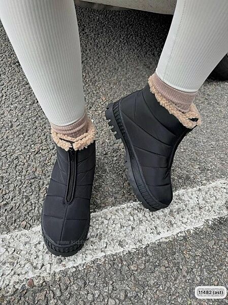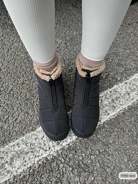 Подробное описание: Чорні дутики жіночі чорні водовідштовхувальні на рижому хутрі