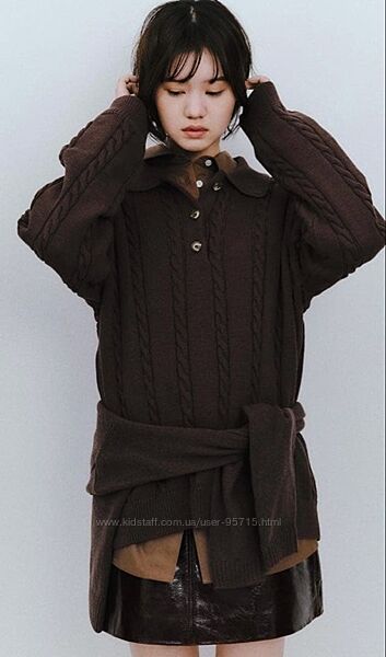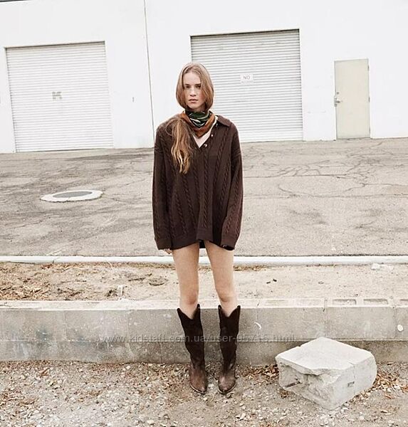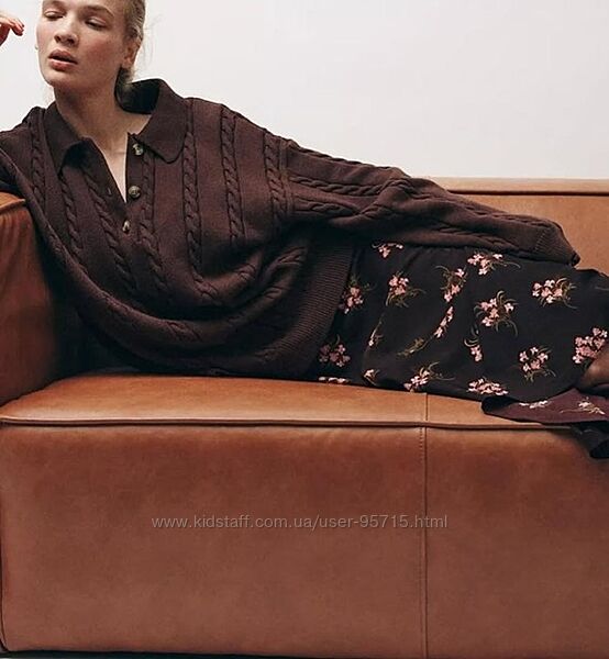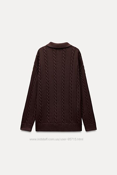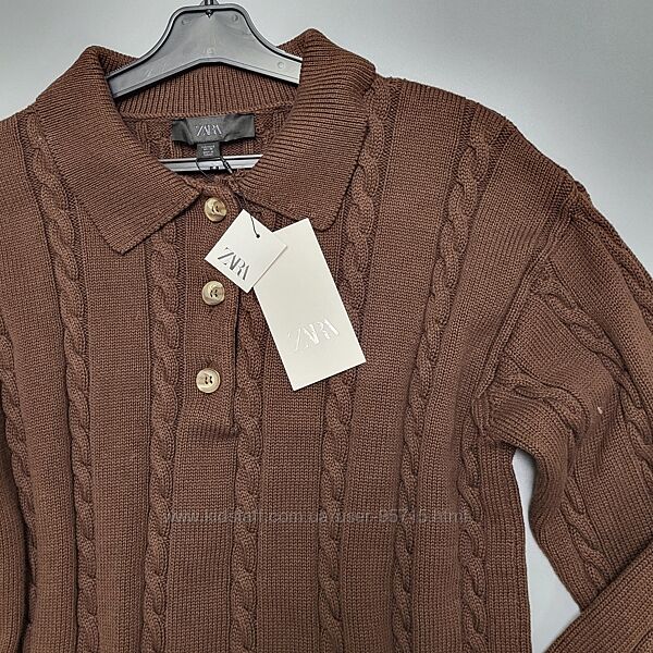 Подробное описание: Бавовняний коричневий светр в коси з коміром поло Zara - S, M