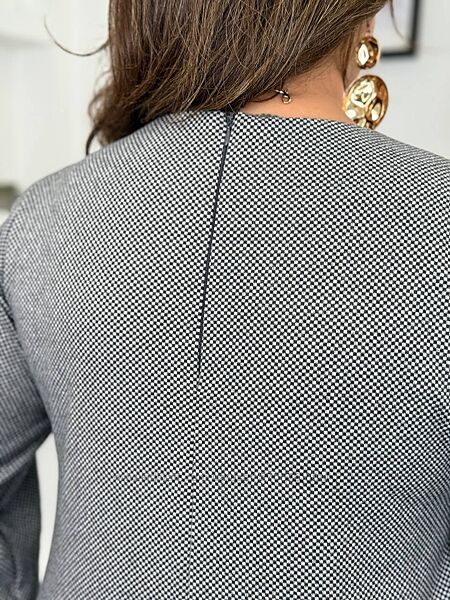 Плаття прямого крою,із накладними кишенями. Позаду потайна блискавка.