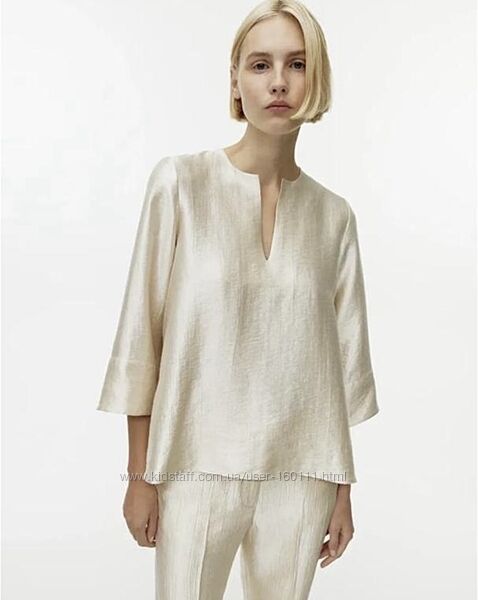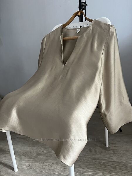Відправляю після повної оплати на карту Стан ідеальний Щільна тканина Блузка з розділеним коміром та ледь помітною м´ятою текстурою. Широкі рукави та розрізи з боків. Довжина 67 см Пог 54 см