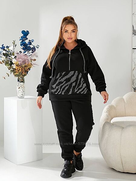Подробное описание: р.48 до 58р. Теплий спортивний костюм тринитка на флісі
