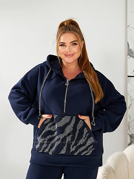 Кофта вільного крою, зручний глибокий капюшон, декорована камінням.