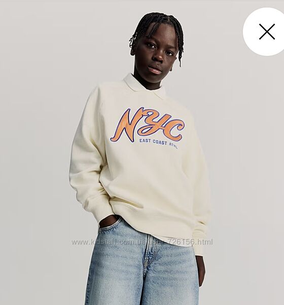 Теплий і стильний світшот від H&M. М’який, комфортний, всередині на флісі — ідеальний варіант для холодної погоди.Ніжний кремовий колір із стильним принтом додає сучасного міського стилю.