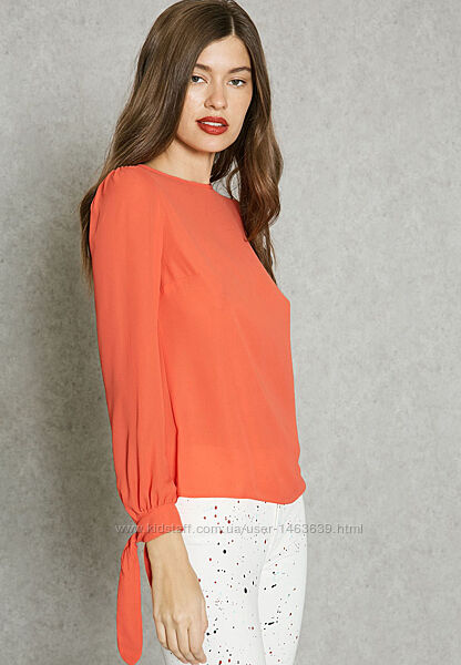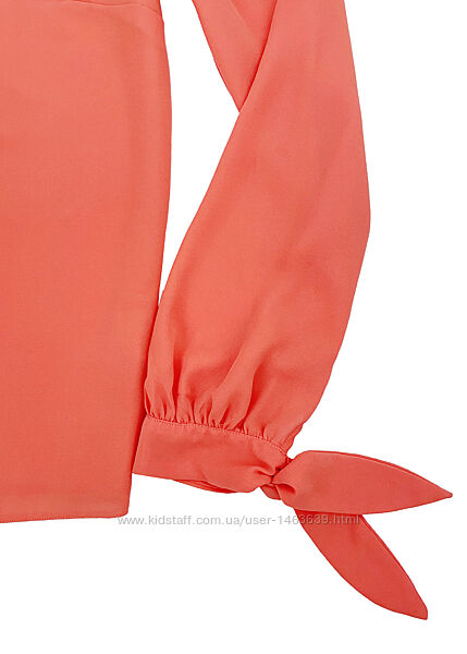 Красива коралова блузка з повітряної шифонової тканини від бренда Dorothy Perkins.Модель із довгими рукавами та зав´язками на манжетах.