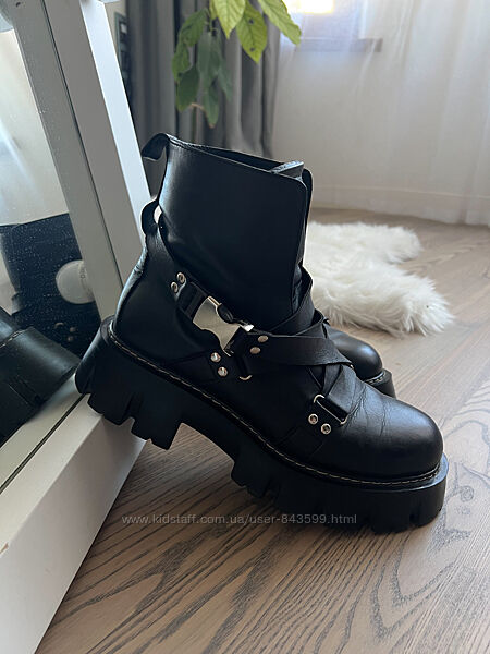 Чорні шкіряні черевики на масивній рифленій підошві з пряжками.👢 Увага! Абсолютний ексклюзив для поціновувачів якості та стилю