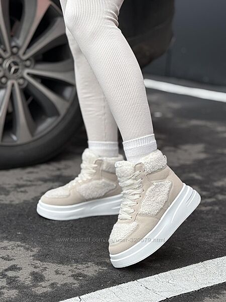 Подробное описание: Зимові кросівки жіночі, молочні хайтопи з хутром тедді