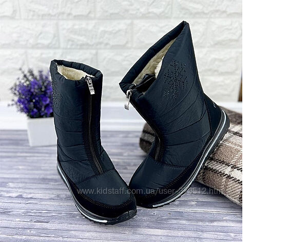 Дутики женские зимние черные на молнии▷ идут размер в размер