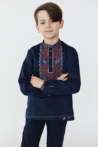Також темно-синя вишиванка для хлопчика льон порадує вас іншими перевагами: