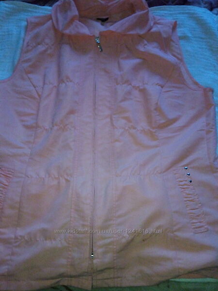 Жилетка жіноча,красивий ніжний персиковий колір на блискавці.Два кармани.Заміри плечі 41см, довжина від плеча 67см,пог 58см.Другие объявления продавца