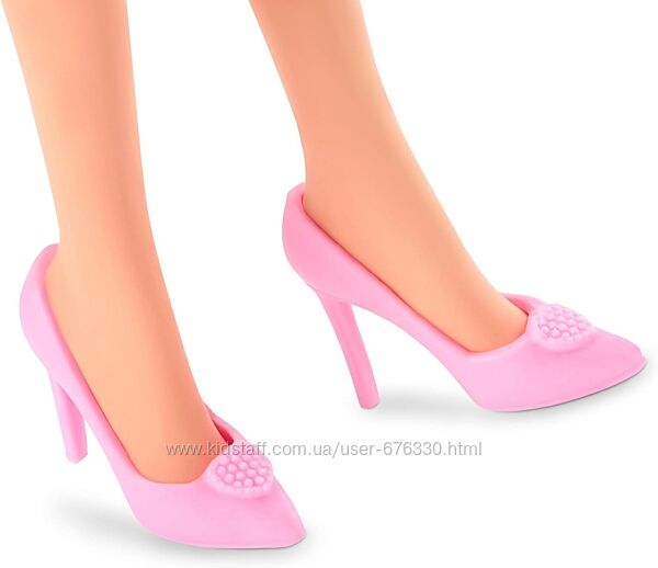 Вона виглядає так само, як Барбі з фільму, зі своїм намистом із ромашок! Чарівний рожевий браслет та рожеві туфлі із серцями завершують її образ.
