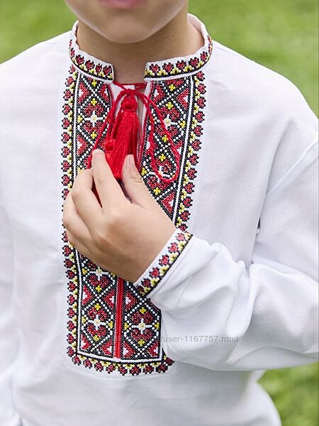 Подробное описание: Вишиванка для хлопчика льон білий червона вишивка