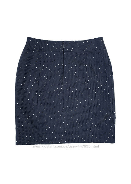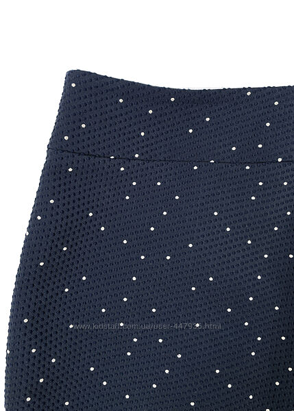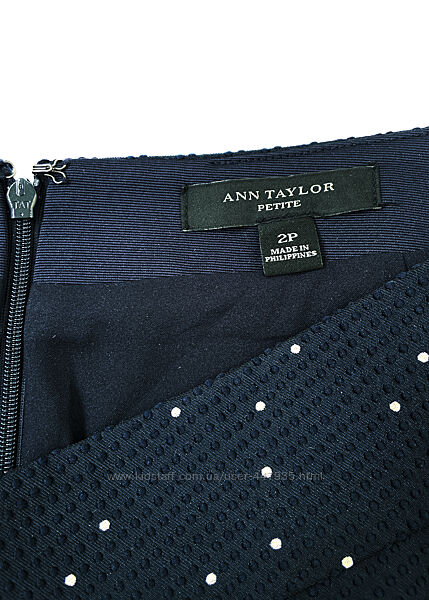 Оригінальна спідниця темно-синього кольору з дрібним білим горошком від бренда Ann Taylor.Незвичайна рельєфна тканина з додаванням шовку, має дуже крутий вигляд.