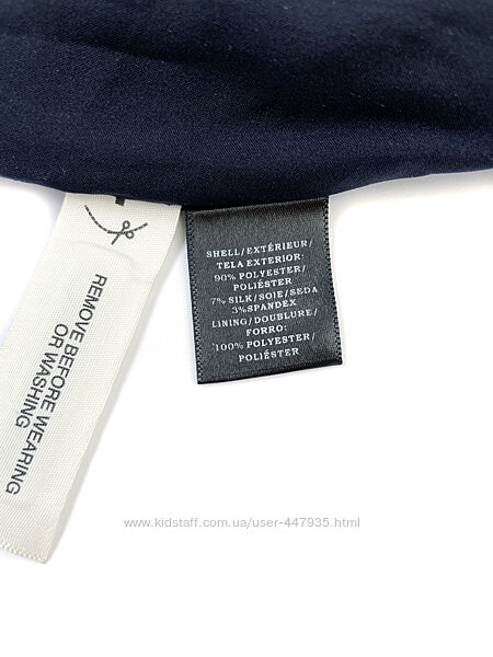 Склад: 90% поліестер, 7% шовк, 3% еластан; підкладка: 100% поліестер.