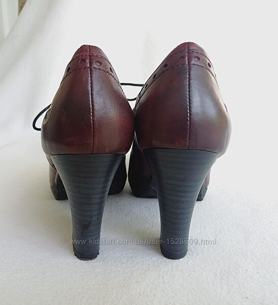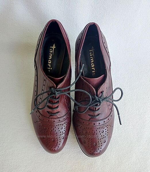 Пропоную бордові ботильони з натуральної шкіри Tamaris. Вживані 1 раз акуратно, стан відмінний, дефектів немає.Розмір вказаний 37, довжина устілки 24 см, ширина 7,7 см, каблук 7,5 см, з них невелика платформа 1,3 см.
