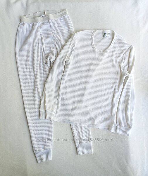 Пропоную білий комплект термобілизни - лонгслів та кальсони. Матеріал поліестр з віскозою, м´який, приємний до тіла, добре тягнеться. Комплект чоловічий, але брала собі під світлий спортивний костюм. Вживаний мало, акуратно, стан відмінний.Розмір вказаний S-M. Мірки: кофта - довжина 60 см, ширина плечей 40+ см, довжина рукава 56 см, ширина грудей під пахвами 46 см, тягнеться до 66 см. Кальсони - довжина по боку 92 м, ширина талії 30-48 см.