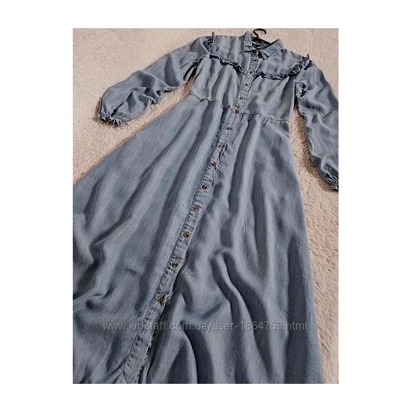 Миди платье рубашка из лиоцелла Marks & Spencer. Длинный объемный рукав. Отложной ворот. Отрезная талия. По всей длине идёт на пуговках по бокам карманы. Размер СДлина 112