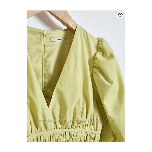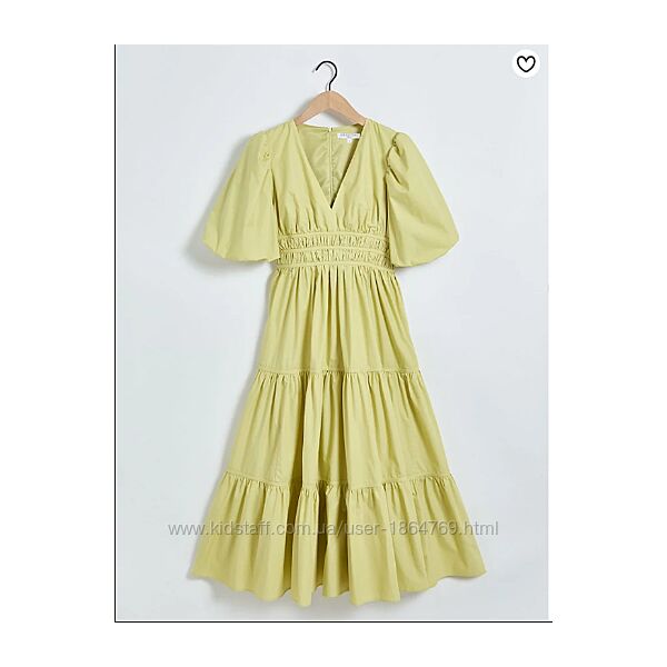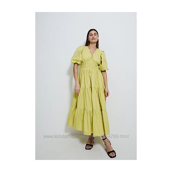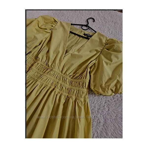 Шикарное хлопковое макси платье George. Короткие объемные рукава. Талия сборка. Ярусный фасон. Натуральная хлопковая ткань поплин - держит форму. Сзади идет на молнии. Размер 12Длина 128
