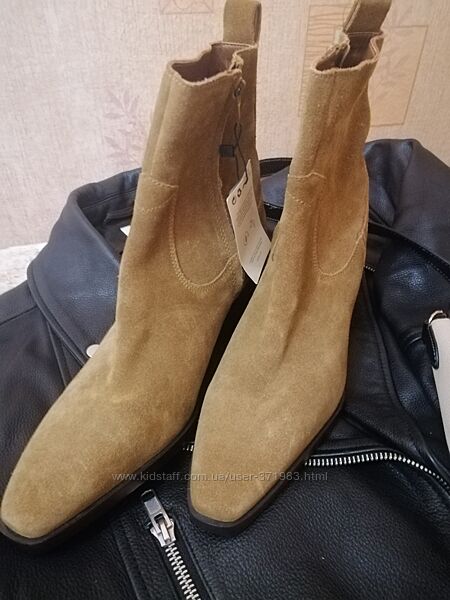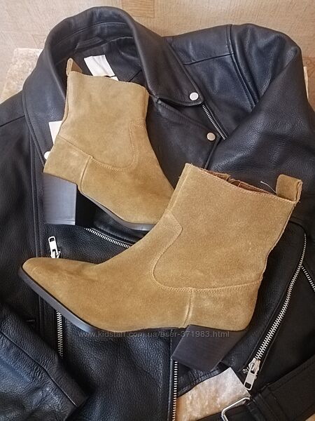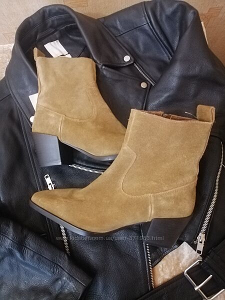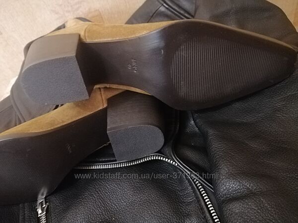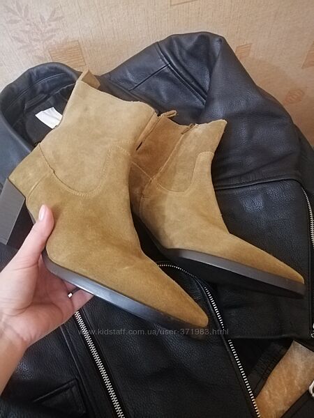 Нові. Натуральна замша. Без утеплення. Тренд цього сезону) підійдуть і під спідницю і під джинси. Дівчата, кому підходить розмір - хапайте, не пожалкуєте.36 розмір 23,5 см (від краю до краю 24 см)