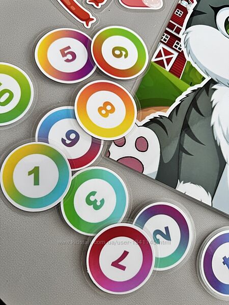 Прикріплюєте цифру і дитина має дати "з´їсти" котику таку кількість їжі.