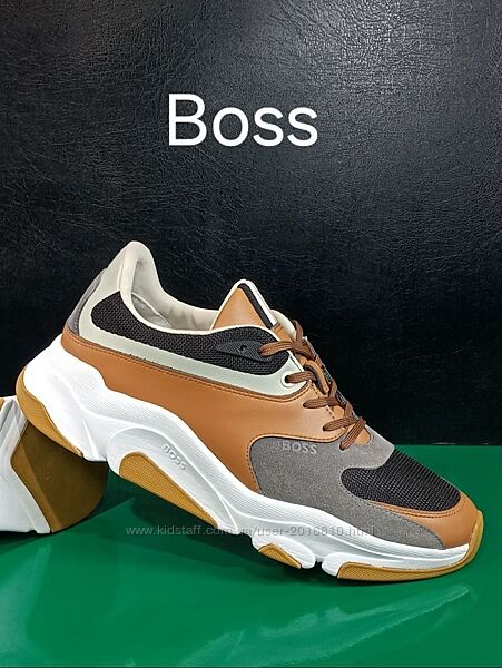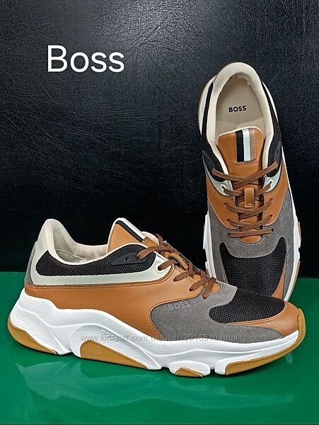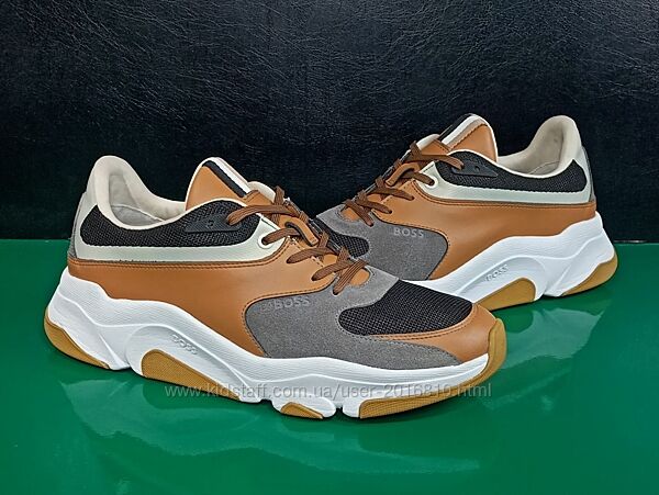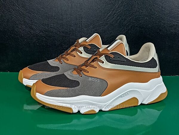 Кожаные кроссовки Boss Herren Asher Runn mx Sneakers Open Grey 60 Оригинал