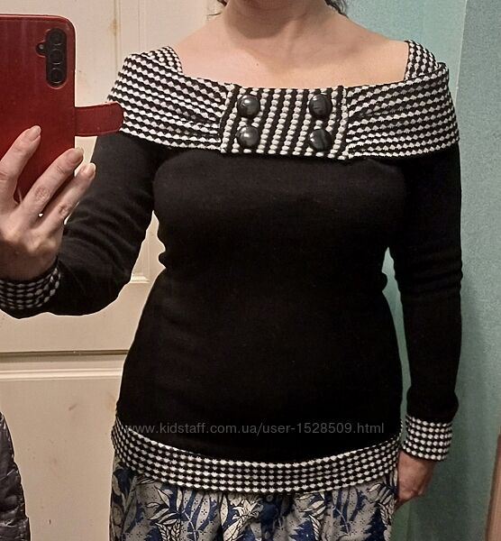 Пропоную чорно-білий светр виробництва Італії. 95% акріл, 5% еластан, тягнеться. Уживаний акуратно, стан дуже добрий, дефектів немає, дивітьсяфото.