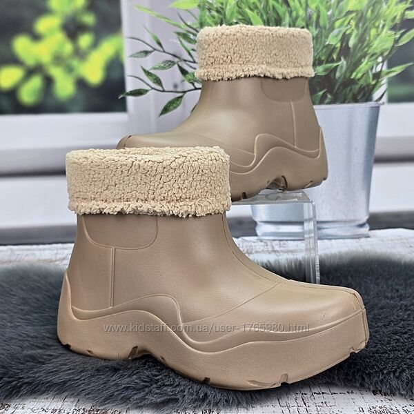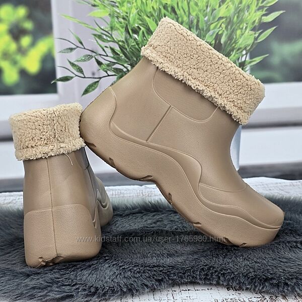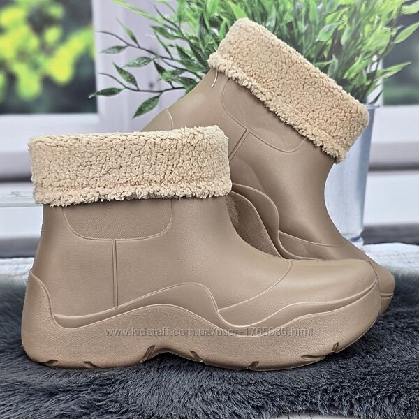 Женские утеплённые сапоги Progress выполнены из лёгкого и водонепроницаемого материала ЭВА. Верх оформлен бежевой меховой вставкой, пришитой к голенищу, что добавляет тепла и комфорта при носке. Внутренняя часть отделана искусственным мехом. Высота модели от подошвы — 16,5–17,5 см, высота внутри — 14,5–15,5 см. Сапоги подойдут для холодной осени и зимы.Благодаря прочной подошве и закрытому фасону обувь надёжно защищает от влаги и холода, сохраняя лёгкость при движении.