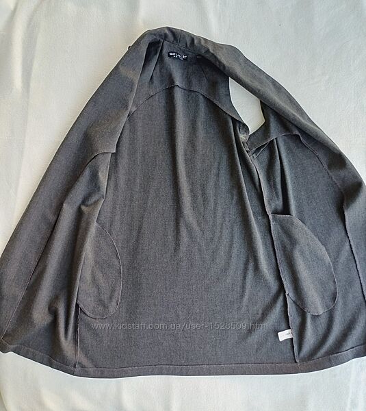 Пропоную сіру подовжену жилетку від Select. Склад 81% поліестр, 15% віскоза, 4% еластан, щільна костюмна тканина. Уживана акуратно, стан відмінний, дефектів немає, дивіться фото.Розмір вказаний 12/40. Довжина 86 см, ширина грудей під пахвами 52 см.