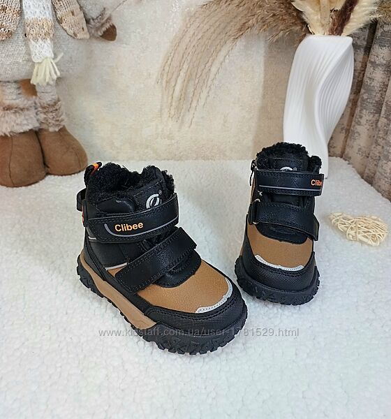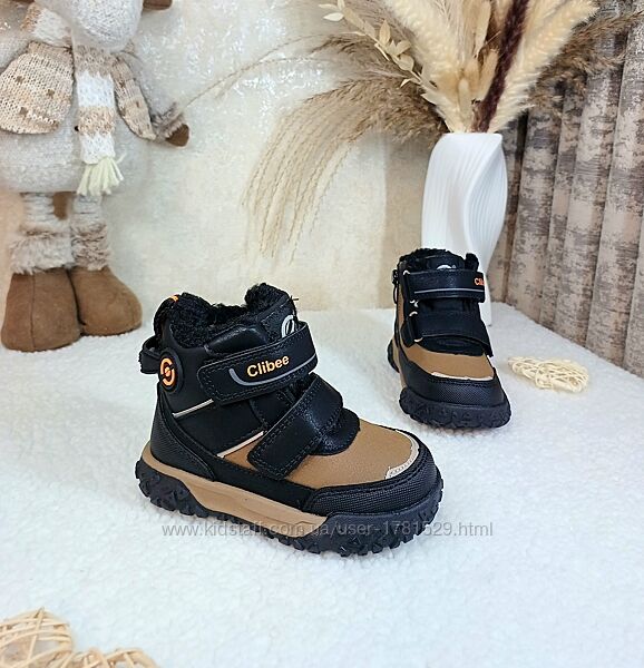 Зимові черевики з нової колекції від Clibee для хлопчиківВерх якісна еко-шкіра та водонепроникний матеріал, дуже легенькі. Всередині густа овчина 60% натуральна. Захисний прорезинений носок і п´ятка. Фіксація двома липучками, збоку на замочку. Підошва протекторна антиковзна. Температурний режим до - 30°. Заміри вказані від краю до краю устілки.