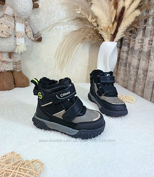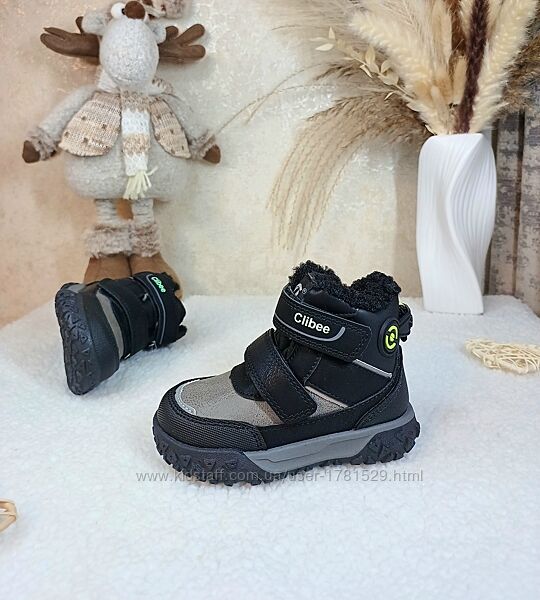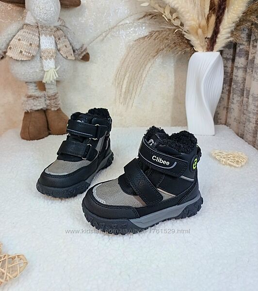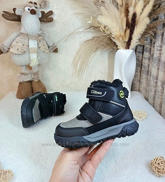 Зимові черевики з нової колекції від Clibee для хлопчиківВерх якісна еко-шкіра та водонепроникний матеріал, дуже легенькі. Всередині густа овчина 60% натуральна. Захисний прорезинений носок і п´ятка. Фіксація двома липучками, збоку на замочку. Підошва протекторна антиковзна. Температурний режим до - 30°. Заміри вказані від краю до краю устілки.