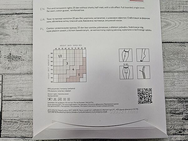 Тонкі та прозорі колготки 204 TANGO 20 ден без шортиків, напівматові, з шовковим ефектом.Стабілізація за формою ноги, обплетена нитка, плаский шов, бавовняна ластовиця, зміцнений носок.