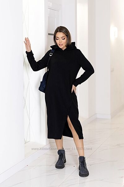 Подробное описание: 42-56р Тепла трикотажна жіноча сукня на флісі з капюшоном Era