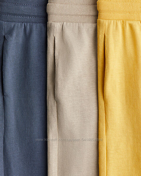 Комплект джоггерів 3 штуки для хлопчика з м´якого трикотажу. З внутрішньої сторони без начосу. У бічних швах кишені. У поясі широка гумка і шнурок, що діє. З нової колекції дитячого одягу провідного європейського бренду H&M.Розмір у наявності:
