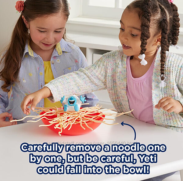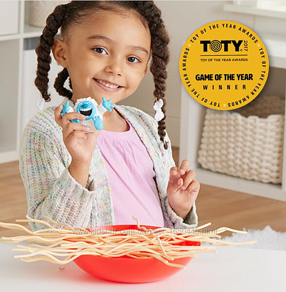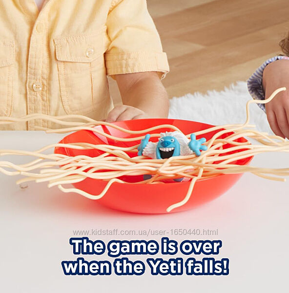Настольная игра Yeti in My Spaghetti Йети в спагетти Hasbro Play Monster ОригиналКто знал, что Йети любят спагетти?! Мы знали! В этой забавной и веселой игре лапша выкладывается на мыске, а йетти просто сидит на ней. Но если вы будете вытаскивать лапшу одну за другой (будьте осторожны!), Йети может упасть в миску, и вы проигрываете!
