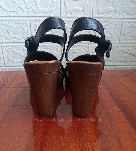 Босоніжки від бренду Lasocki (Польща).Зверху та в середині натуральна шкіра,колір чорний-коричневий. Застібка металева пряжка, модель легка та комфортна.В хорошому стані.