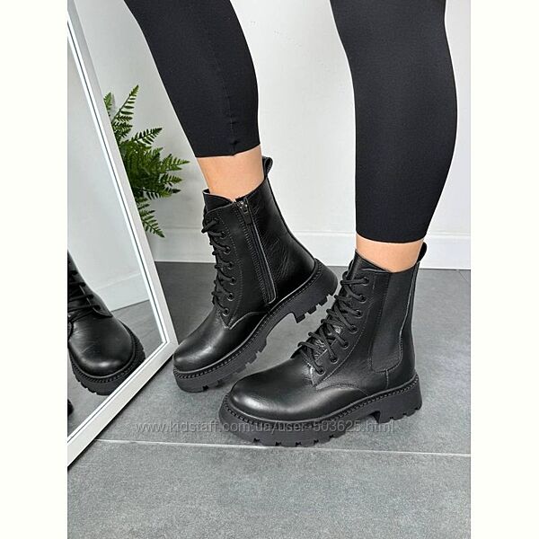 Подробное описание: Шкіряні чорні зимові черевики челсі на шнурках