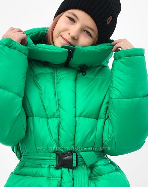 Пухова куртка для дівчаток . Наповнювач екопух 310, легкий і гіпоалергенний, витримує холод до -25°C. Цілісний капюшон із фіксацією на кулісу. Рукав на трикотажній манжеті, для додаткового захисту від холоду. Дві бічні кишені з об´ємним клапаном на кнопках і внутрішня на блискавці. Застібка на блискавку з вітрозахисною планкою. Низ регулюється. Пояс у комплекті.Матеріал: Плащова тканина Хутро: Без хутра