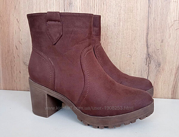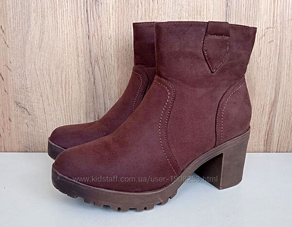Подробное описание: Коричневі ботильйони, жіночі демі напівчеревики на масивній підошві, р. 38