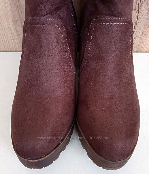 Матеріал: зовні штучна замша (міцний взуттєвий текстиль з коротким ворсом), всередині фліс і термопідкладка. Устілки теж флісові, м´які і пружні.