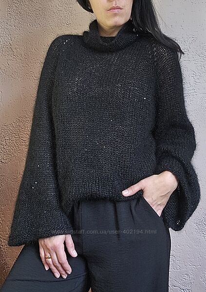 Ошатний Teddy sweater. Італійський суперкідмохер на шовку та паєточка на бавовні, гарно та делікатно сяє.Дуже м´якенький, оксамитовий по фактурі.Колір: чорний, паєтка чорна в тон.