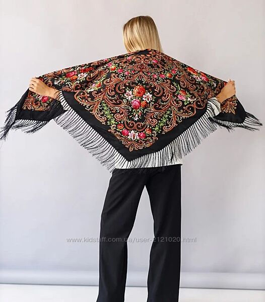 Хустка з квітковим національним орнаментом.Склад: 80% шерсть, 20% віскоза.