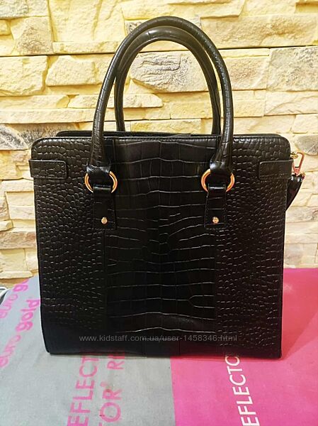 Велика,стильна, вмістка сумка-шоппер відомого англійського бренду Jasper Conran .,із натуральної шкіри ,тримає форму,з тисненням під шкіру рептилій, одне відділення і кишенька на блискавці,застібається на кнопку, заміри: довжина 35 см, ширина дна 11 см, висота 36 см, довжина ручок 50 см.
