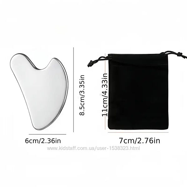 Новий, металевий масажер гуаша. Стандартний розмір, зручно лягає у долонь, не малий, не тонкий. Упакований в бархатний мішечек, підійде і на подарунок.