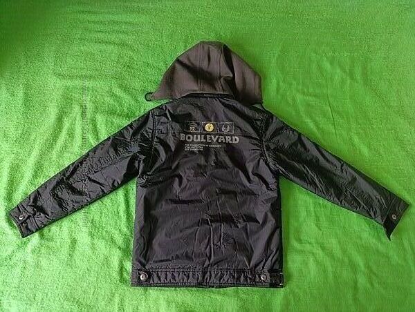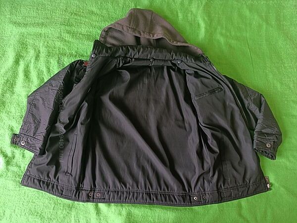 - черная стильная демисезонная куртка, Турция, плотный непродуванмый материал верха, есть слой утеплителя, капюшон на молнии, отстёгивается, в отличном состоянии. Подойдёт на рост 152 см, 10-12 лет, смотрите замеры: