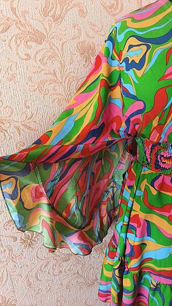 Літня, яскрава сукня в ідеальному стані. Заміри: ПОталии в спокойном состоянии-33см+ потянется еще-6-7см, ПОГ- 48см длина- рукав-реглан, длина рукава от горловині-70см.Другие объявления продавца