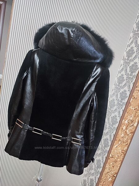 📌📌 Дуже тепла жіноча зимова дублянка Woger. Розмір 2ХЛ наш 48 розмір! Фасон приталений!Вставки 💯 % натуральна лакова шкіра!