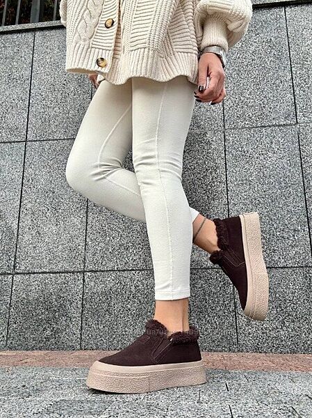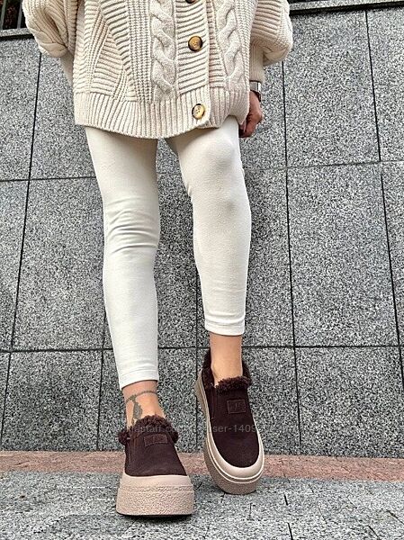 Зимові шоколадні лофери з хутром, зимові черевики 36-41р код 9254
