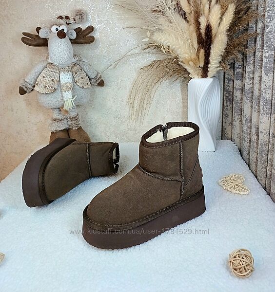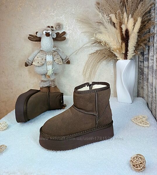 Зимові шикарні та дуже тепленькі натуральні уггі для дівчатНа ніжці виглядають просто вау. Верх натуральна шкіра замш. Всередині густа овчина натуральна. Фіксація збоку на замочку. Підошва антиковзна. Гарна якість, дуже дуже легенькі. Заміри вказані від краю до краю устілки. Маломірять, дивіться заміри устілки.