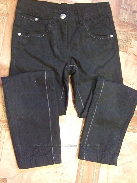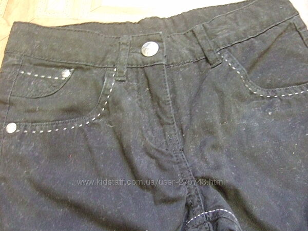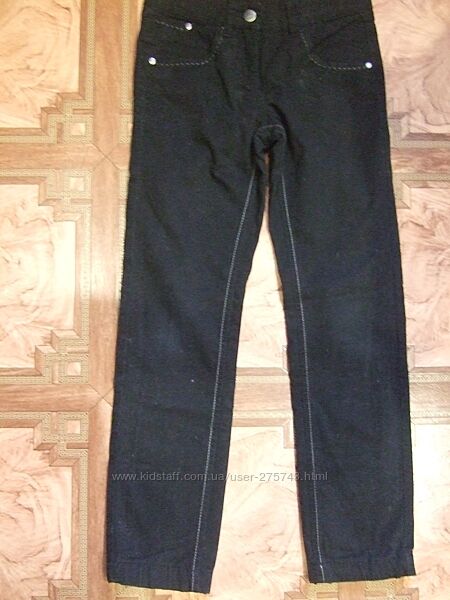 Фото 5-8 джинсы черного цвета размер 140 см. Классические джинсы, 5 карманов, оформлены белой отстрочкой по внутреннему шву и карманам.