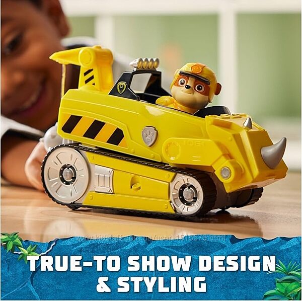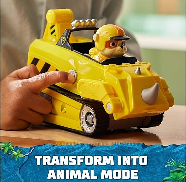 Приготуйтеся до захоплюючих пригод з новою серією від PAW Patrol - Jungle Pups, до якої входить щеня Кремез та його рятувальним автомобілем-трансформером у стилі носорога! Транспортний засіб песика має захоплюючу трансформацію: натисни на кнопку з логотипом патруля, щоб відкрити ковш, а потім відкрий відсік у задній частині автомобіля та підніми стрілу крана, щоб використати руйнівну кулю для усунення перешкод. Кремез одягнений в свою фірмову форму дослідника джунглів, фігурка щеняти має висоту близько 5 см і виймається з автомобіля.