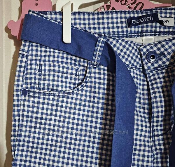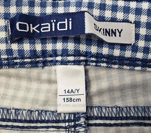 Блакитні стильні капрі у клітиночку від Okaïdi для дівчинки у розмірі 14 років.Стан ідеальний.Тягнуться.